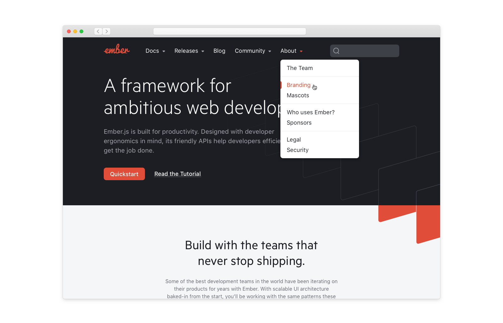 Redesigning the Ember website has been a goal for several years now, always with the intent to get to a solid homepage comp and then share with the community pre-implementation for input and buy-in. There have been several attempts like this one that have failed along the way for various reasons. This is the first redesign that has achieved both internal consent and which hasn't fizzled out and died along the way, and represents the learnings of the failed previous attempts.