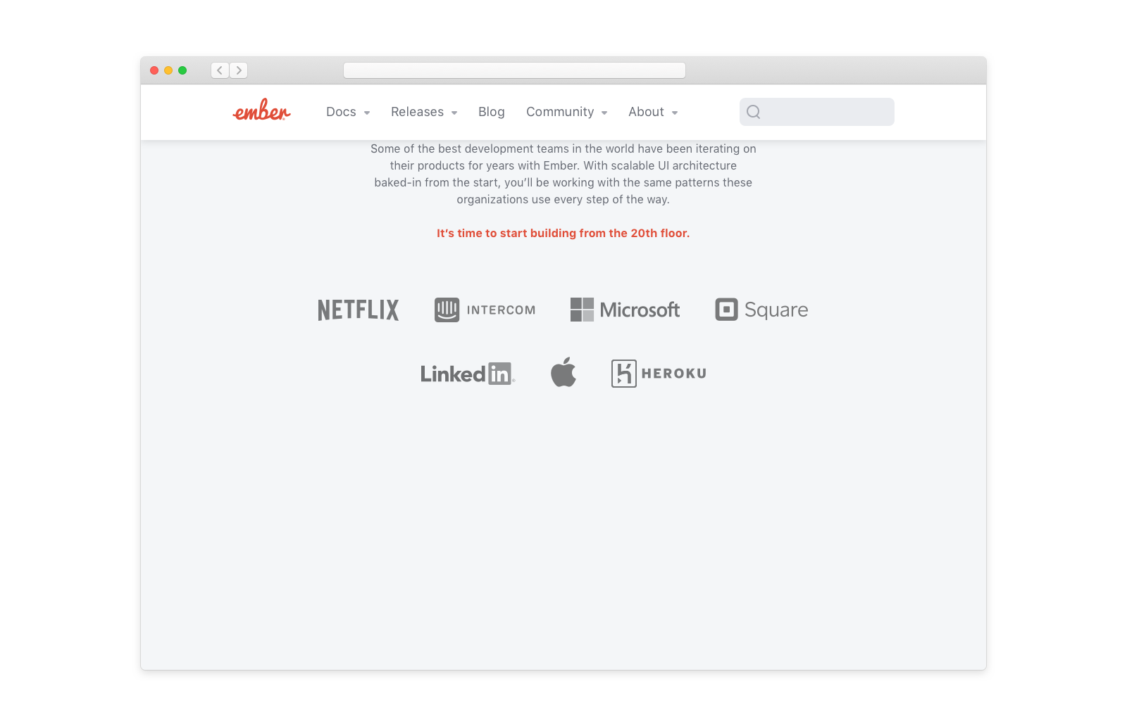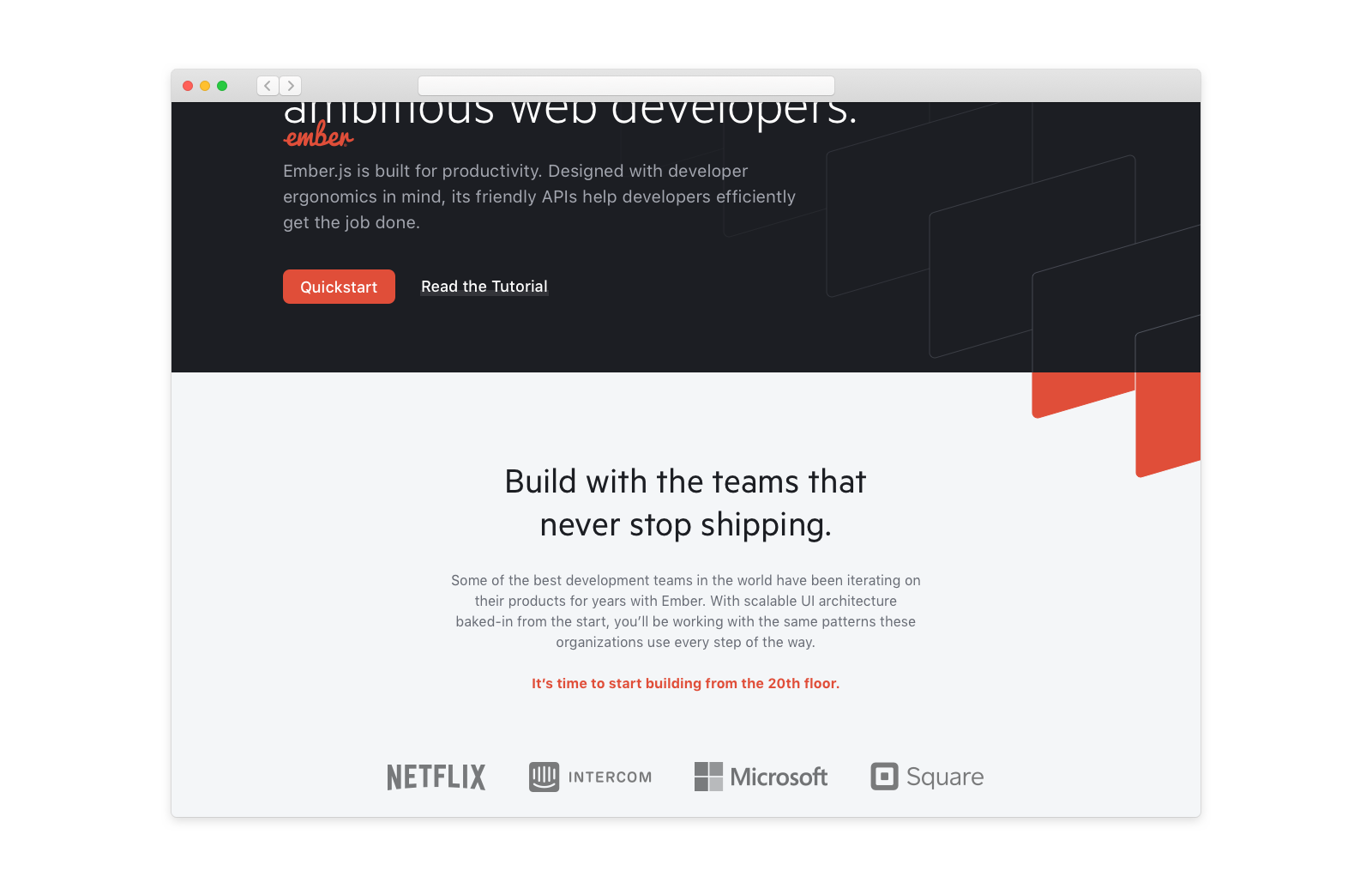 Right now a developer visiting emberjs.com is presented with light information about the framework, but little about what it’s like to use modern Ember. The homepage is a very different experience from the programming model, the things we say and do in other RFCs, forward-looking conference talks and what it’s like to actively develop an Ember app in 2018. The design also hasn't changed significantly in years, so someone who comes back after two or three years away gets the impression nothing has changed, even if we've made slow and subtle updates to the copy, and dramatic improvements to Ember itself.